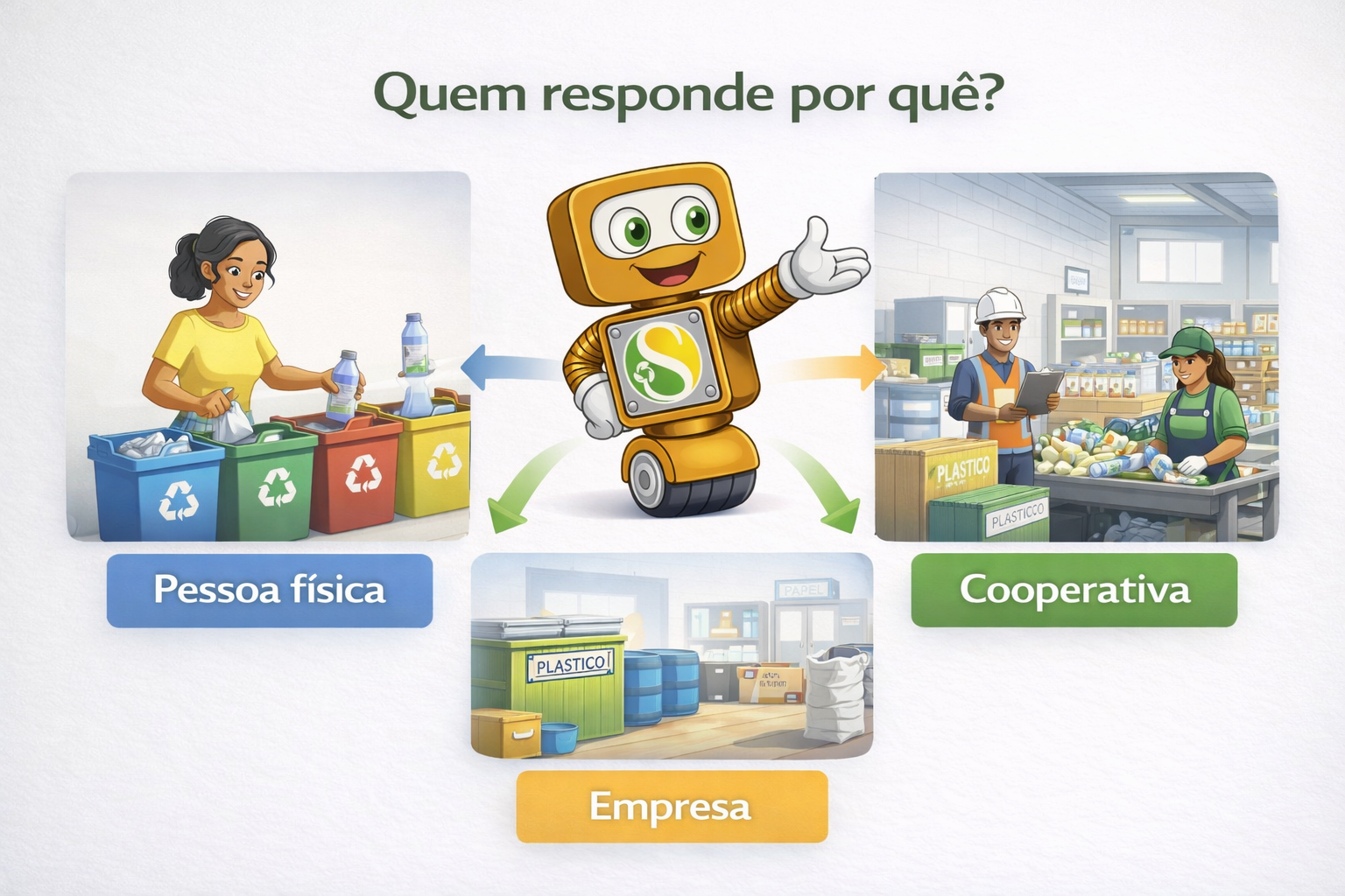 Na prática, cada agente responde dentro do seu papel. O consumidor deve separar e disponibilizar adequadamente materiais quando houver coleta seletiva ou sistema de logística reversa implantado. O setor empresarial deve estruturar, participar ou cumprir obrigações de retorno, rastreabilidade e destinação, conforme o caso. O poder público organiza, regula, fiscaliza e executa o que lhe cabe.