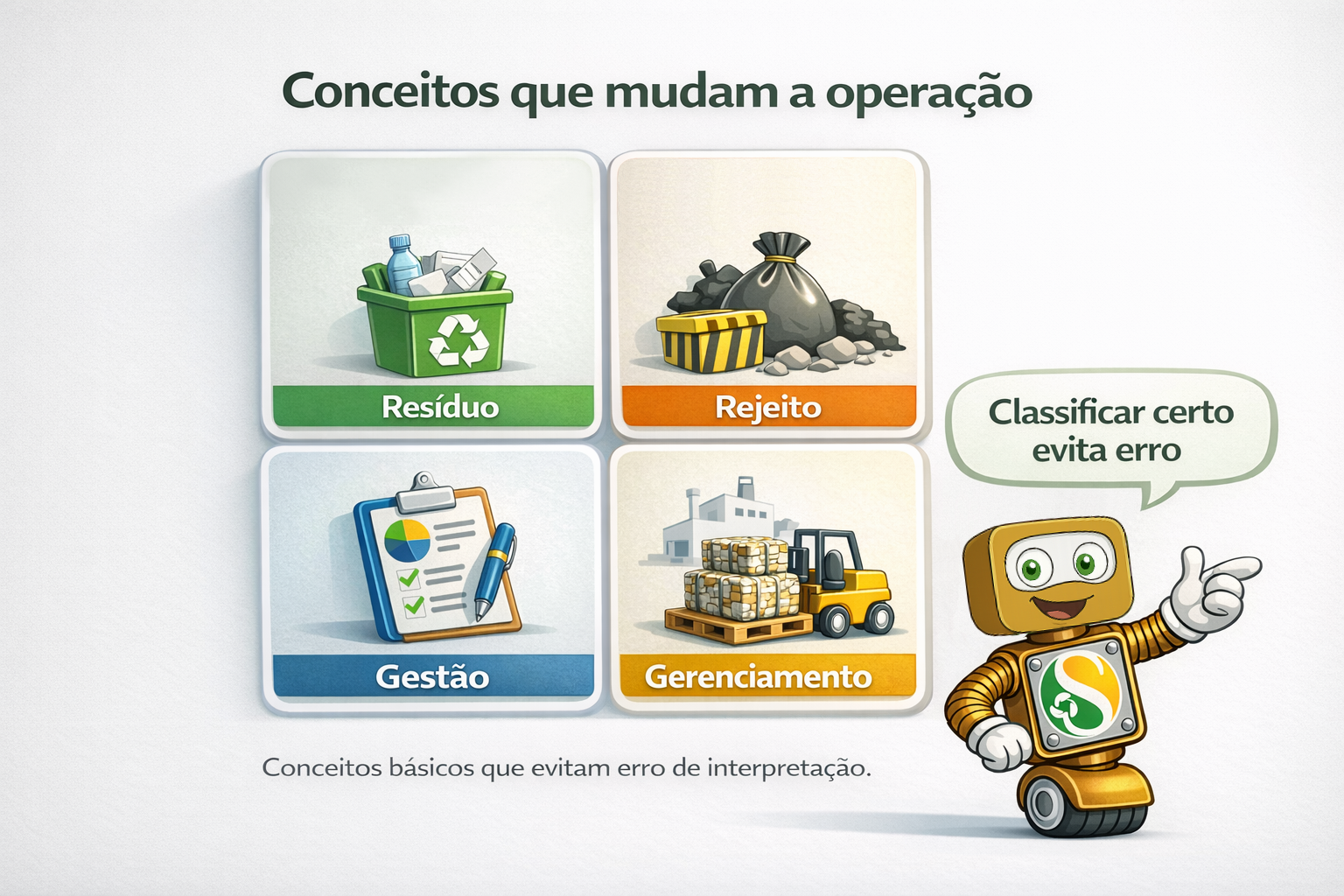 A PNRS não trata tudo como se fosse a mesma coisa. Um dos erros mais comuns do setor é chamar qualquer descarte de “lixo” e encerrar o assunto. A lei trabalha com distinções importantes, e elas mudam a forma de operar.