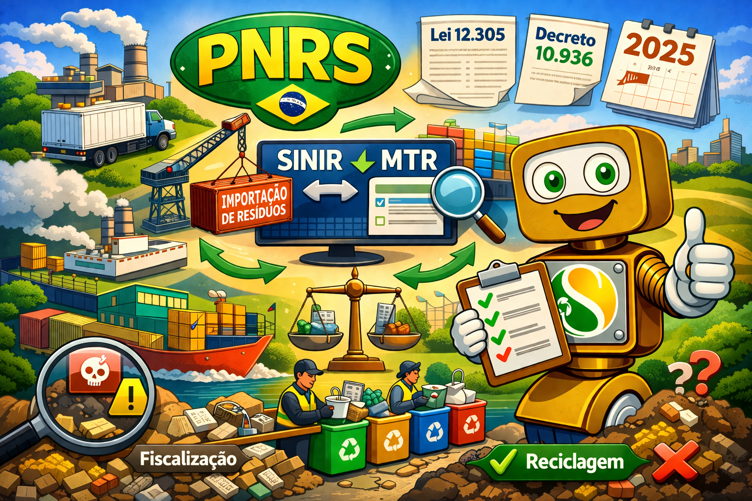 Este artigo foi construído com base na Lei nº 12.305/2010, no Decreto nº 10.936/2022, em desdobramentos mais recentes da logística reversa e da rastreabilidade no SINIR/MTR, e na atualização legal de 2025 sobre importação de resíduos. O objetivo aqui é didático e prático. Para operação real, licenciamento e obrigações específicas, sempre vale confirmar as regras do seu estado, do seu município e do órgão ambiental competente.