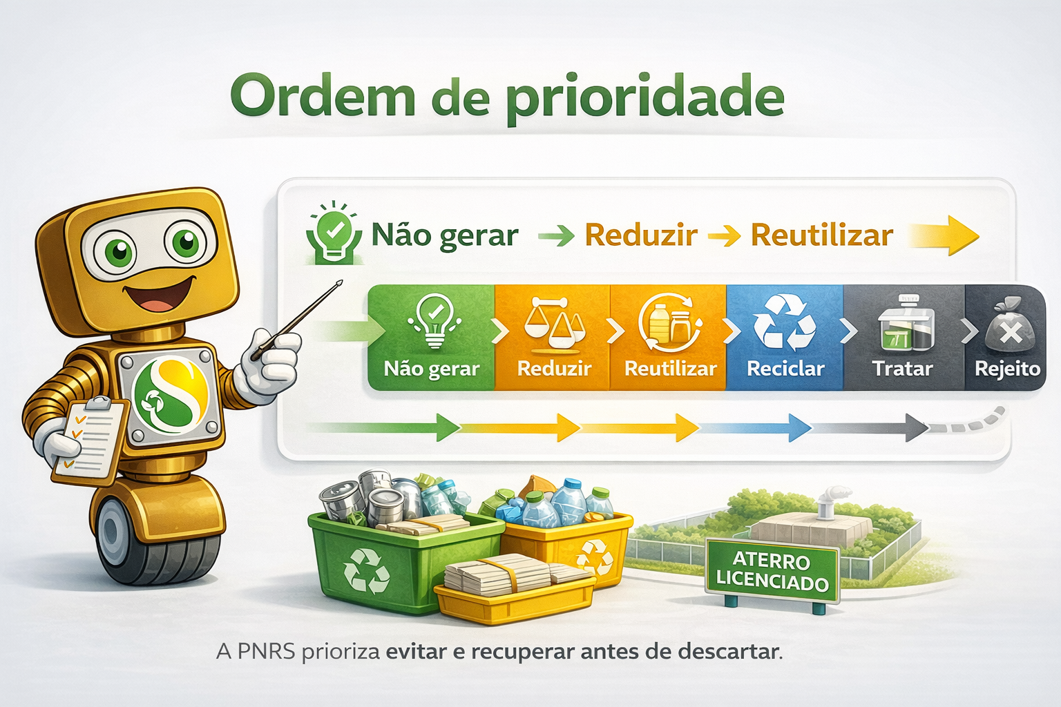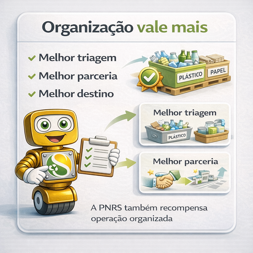 A PNRS não é um manual de organização de galpão, mas empurra o setor nessa direção: operação mais limpa, mais previsível e mais rastreável.