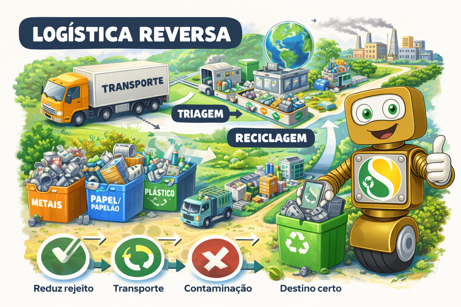 Logística reversa é retorno organizado (não “lixo reciclável” genérico).