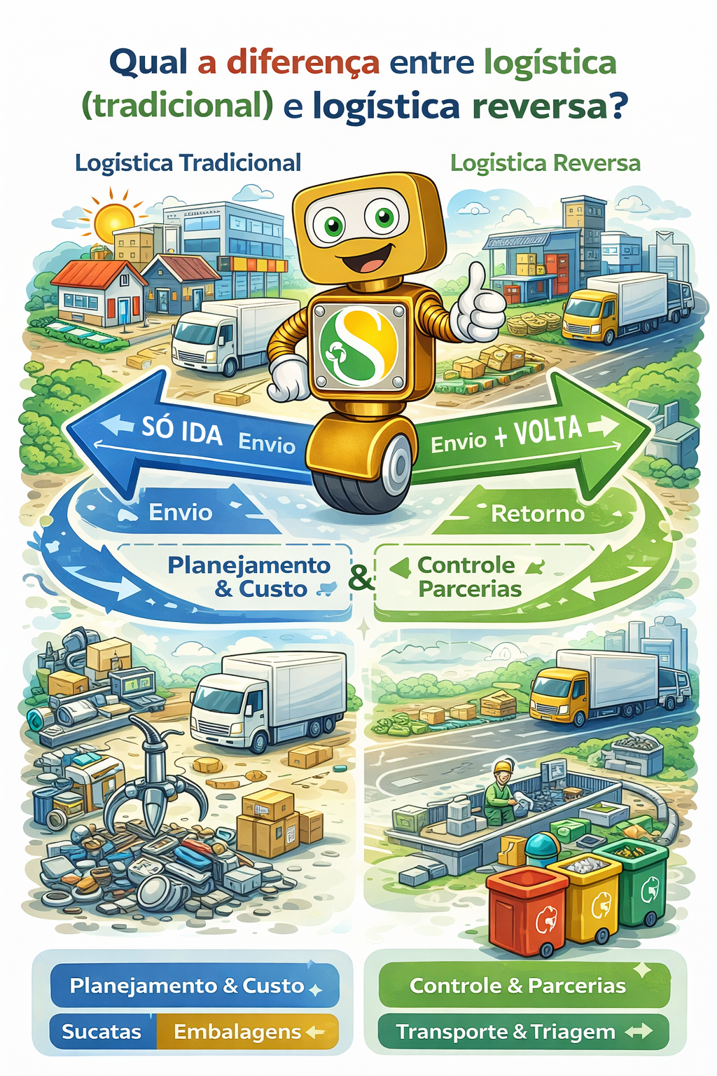 Pode parecer simples, mas essa diferença muda planejamento, custo, controle, parceiros, tipo de coleta e até o destino final do material. Para quem trabalha com sucatas, reciclagem, embalagens, eletrônicos, transporte ou triagem, entender isso evita erro operacional e melhora a tomada de decisão.