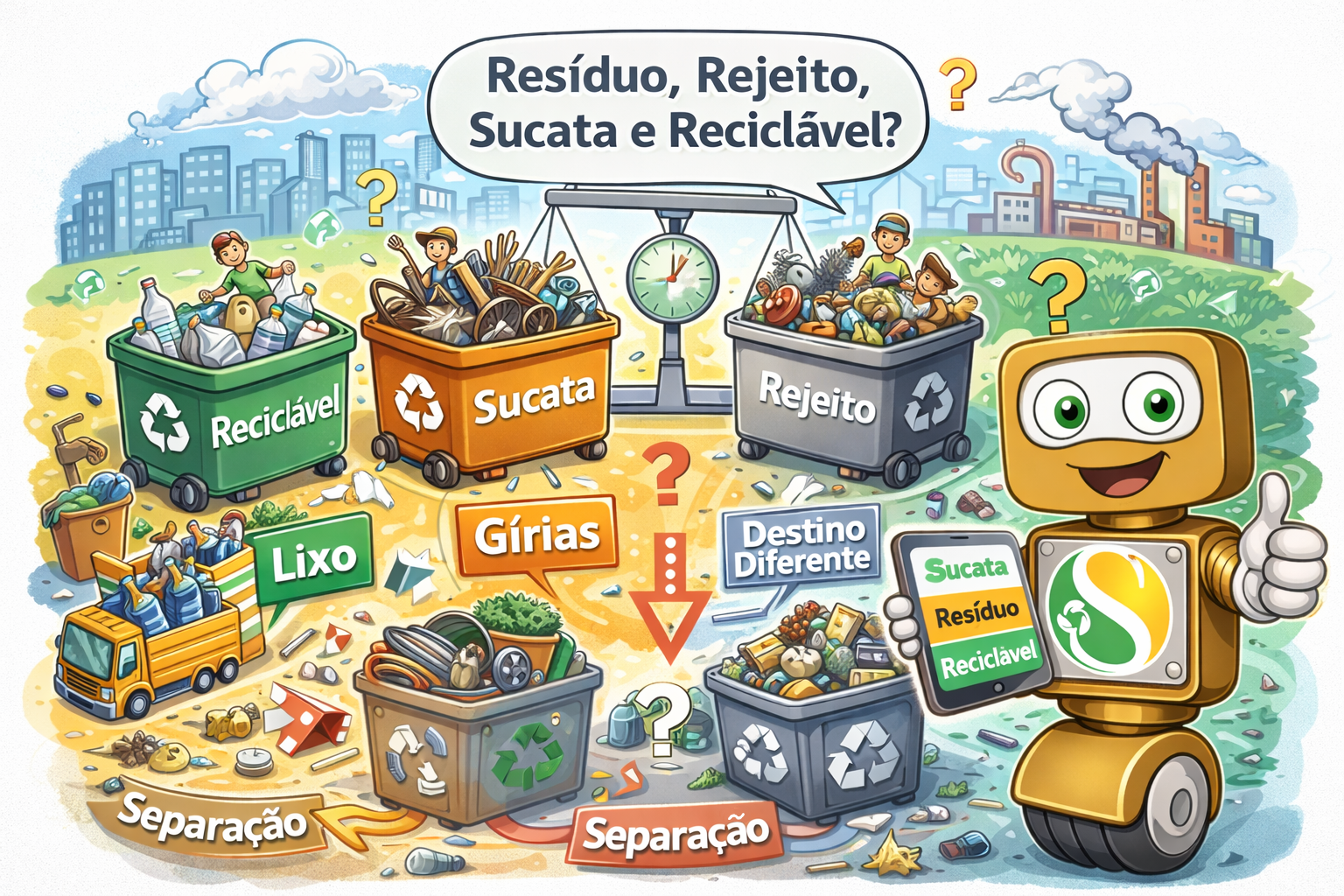 No setor, a confusão costuma acontecer porque a gente usa palavras do dia a dia (“lixo”, “sucata”, “reciclável”) para coisas diferentes. E cada cidade, empresa ou comprador ainda tem seus jeitos e gírias.