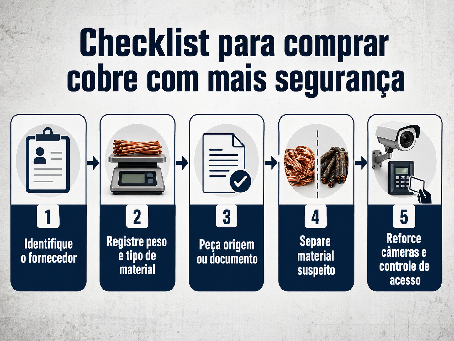 Por isso, em um período de preço alto, não basta apenas “ter cobre”. É preciso apresentar material confiável, separado e com histórico claro.