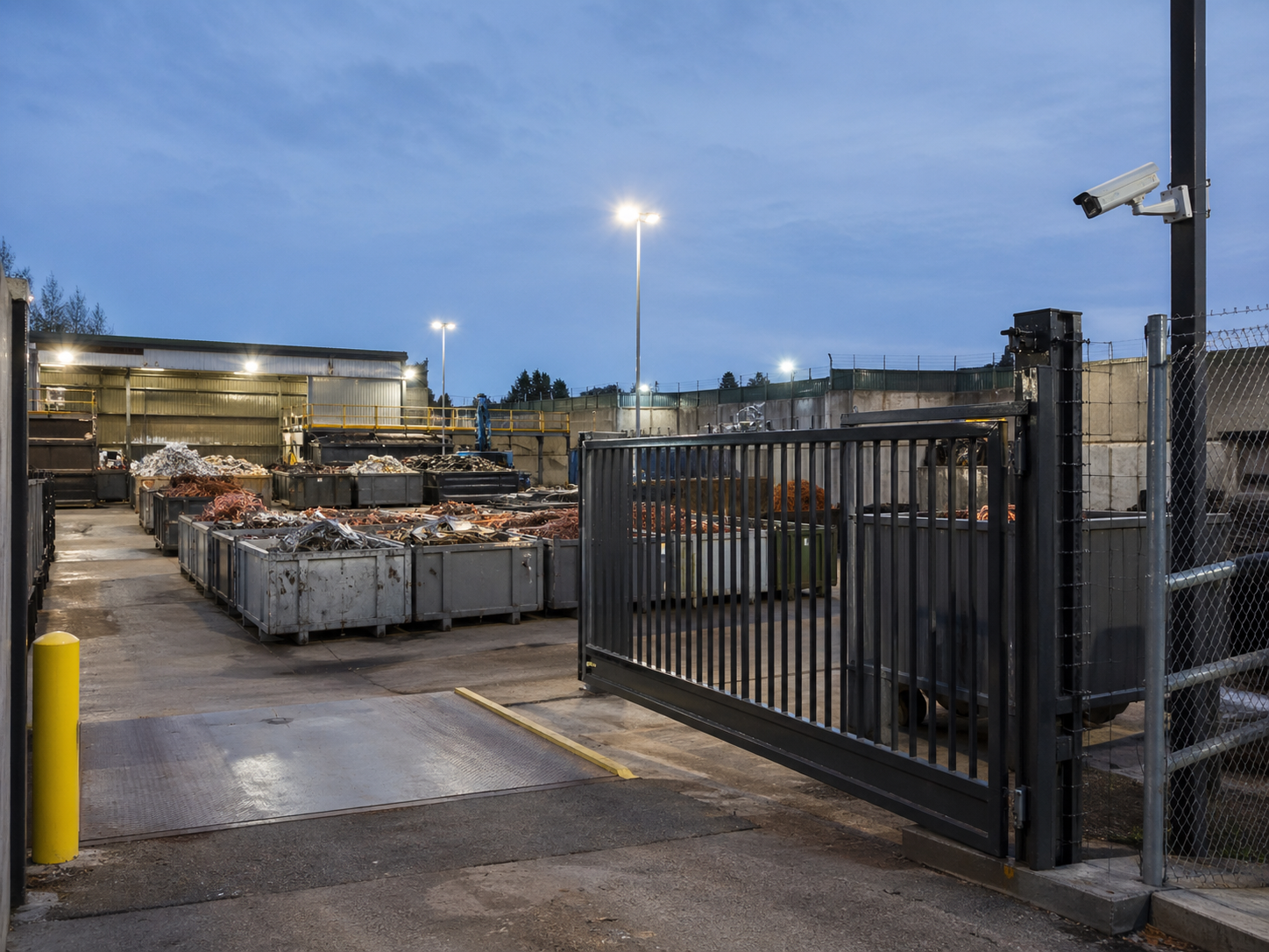 O básico bem feito inclui cadastro de fornecedores, controle de pesagem, registro de compra, câmeras, iluminação, controle de acesso e conferência de materiais.