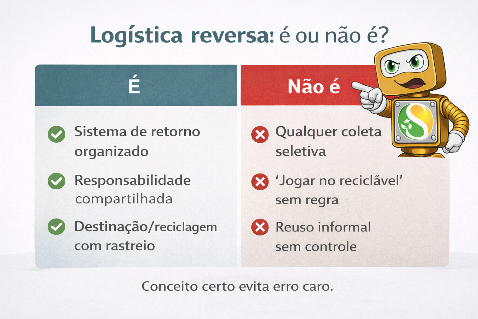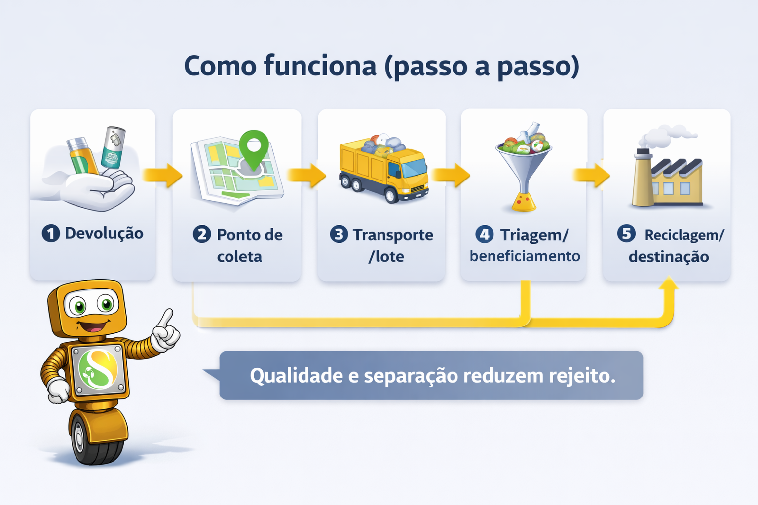 Repare que o foco é o retorno organizado, não apenas “separar o lixo”.