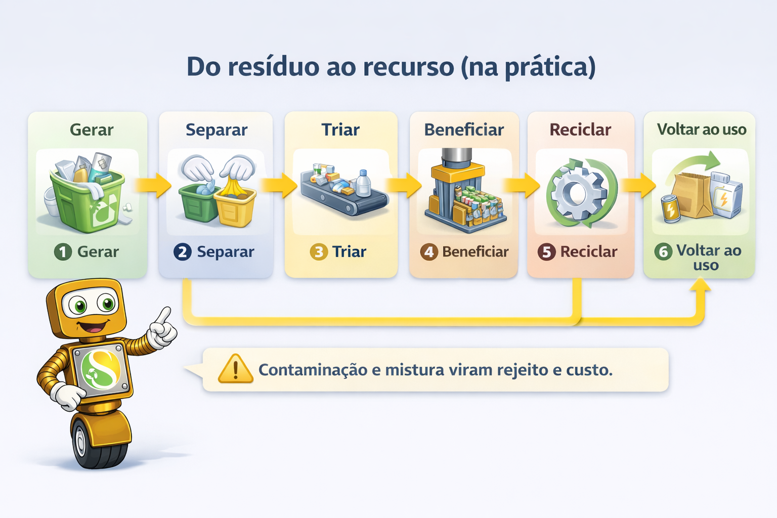 Sem promessas mágicas: reciclagem ajuda muito, mas não substitui reduzir desperdício, evitar contaminação e fazer descarte correto.