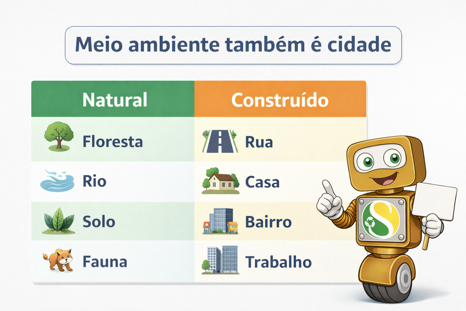 Isso ajuda a entender por que “lixo na calçada”, “fumaça”, “barulho”, “poeira” e “enchentes” são discussões ambientais, mesmo sem ter floresta no meio.
