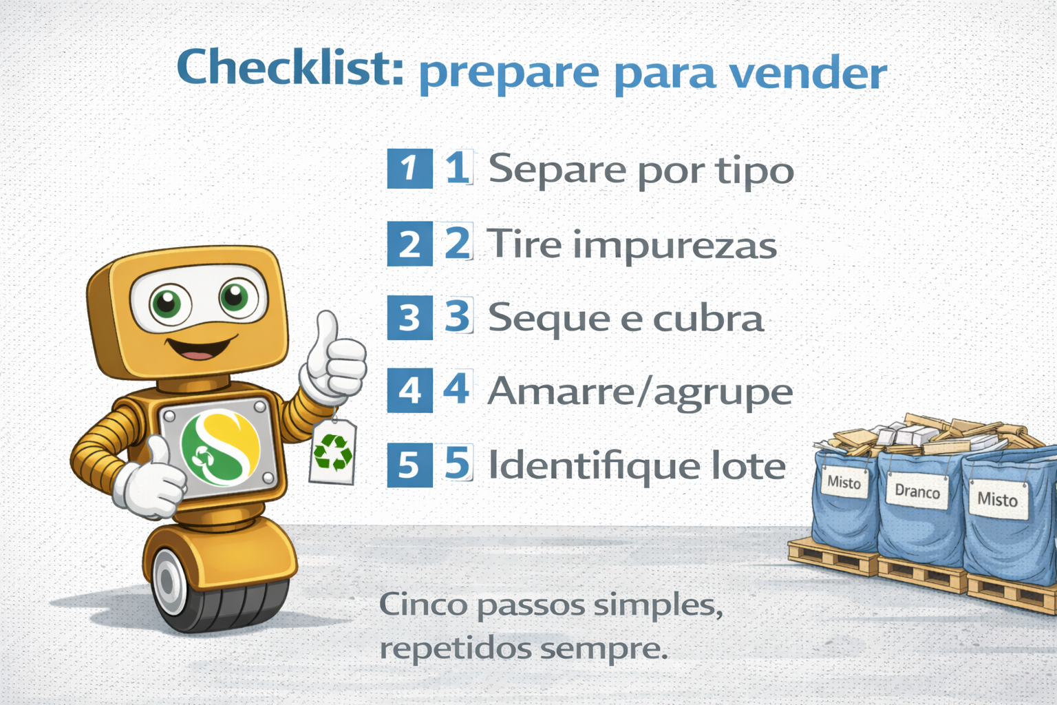 7) Checklist rápido: como preparar papel e papelão para vender/entregar