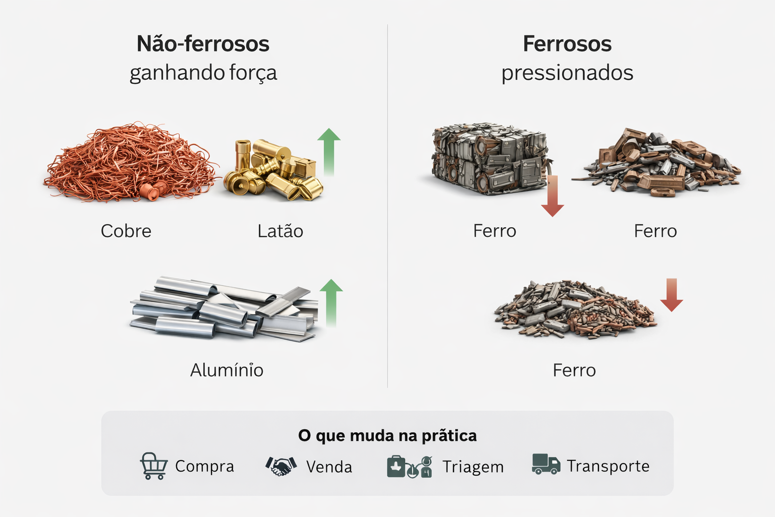 Compradores: precisam ajustar margem com mais cuidado nos não-ferrosos e evitar compra “no automático” em cobre, latão e alumínio.